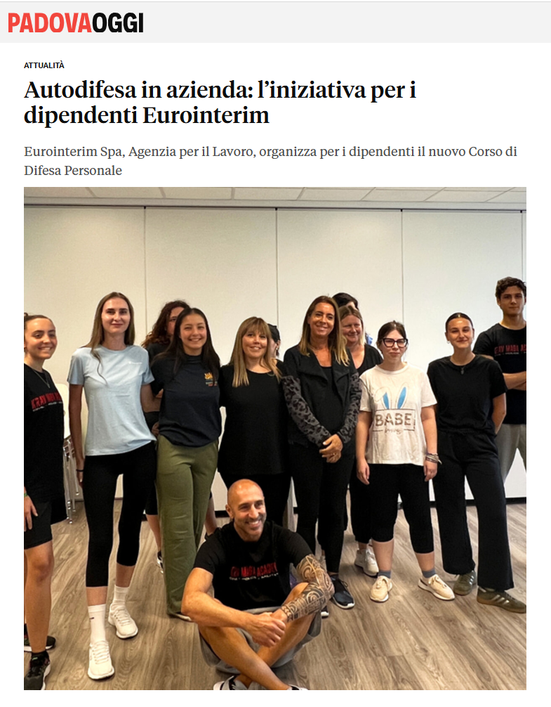 Eurointerim Spa organizza per i dipendenti, in pausa pranzo, il nuovo Corso di Difesa Personale, grazie al quale è possibile ricevere utili suggerimenti e tecniche efficaci e applicabili da tutti per risolvere reali situazioni scomode che possono verificarsi quotidianamente. L'azienda padovana (oltre 128 milioni di euro l'ultimo bilancio depositato) presieduta da Luigi Sposato, organizza l'attività gratuita per i dipendenti da settembre a fine novembre 2025, che si struttura in 8 incontri della durata di 50 minuti a cadenza settimanale. Un’iniziativa importante che affronta i temi della prevenzione, del blocco psicologico causato da un improvviso evento critico e dello scontro fisico.