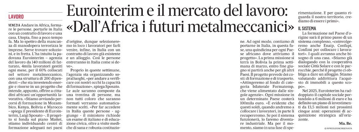 Nel 2025 Eurointerim ha raddoppiato il capitale sociale portandolo a 6 milioni di euro e ha definito un piano di investimenti da 13,5 milioni di euro nei prossimi cinque anni, destinato al consolidamento organizzativo, allo sviluppo di nuovi progetti e a operazioni di acquisizione strategica. Un percorso coerente con la visione di lungo periodo dell’azienda e con il proprio posizionamento come Società Benefit, orientata a coniugare crescita economica, innovazione e impatto positivo.